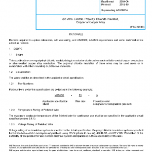 This specification covers polyvinyl chloride insulated single conductor electric wires made with tin-coated copper conductors or silver-coated copper alloy conductors. The polyvinyl chloride insulation of these wires may be used alone or in combination with other insulating or protective materials.