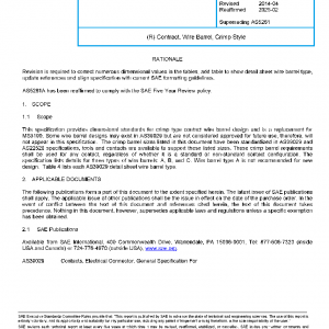 This specification provides dimensional standards for crimp type contact wire barrel design and is a replacement for MS3190. Some wire barrel designs may exist in AS39029 but are not considered approved for future use, therefore, will not appear in this specification. The crimp barrel sizes listed in this document have been standardized in AS39029 and AS22520 specifications, tools and contacts are available to support these listed sizes. These crimp barrel requirements shall be used for any contact, regardless of whether it is a standard or non-standard contact configuration. The specification lists details for three types of wire barrels: A, B, and C. Wire barrel type A is not recommended for new design. Table 4 lists each AS39029 detail sheet wire barrel type.