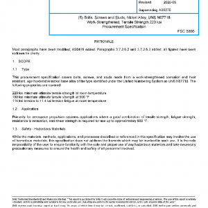 This procurement specification covers bolts, screws, and studs made from a work-strengthened corrosion and heat resistant, age hardenable nickel base alloy of the type identified under the Unified Numbering System as UNS N07718. The following properties are covered: