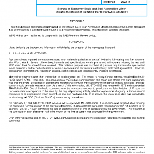 This SAE Aerospace Standard (AS) specifies the general requirements for data recording procedures, packaging, and storing of elastomeric seals and seal assemblies which include an elastomeric element prior to the seal being assembled into hardware components.