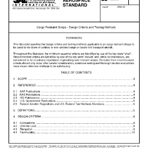 This Standard aims at identifying the design criteria and testing methods adequate to guarantee the ultimate load and operational dependability of cargo restraint strap assemblies with a typical 22 250 N (5,000 lbf) rated ultimate tension load capability, as used by the airline industry in order to restrain on board civil transport aircraft during flight: