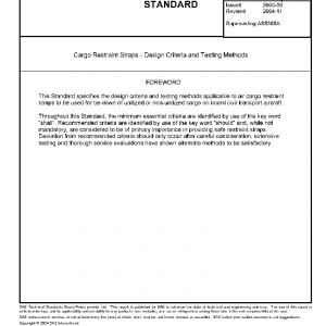 This Standard aims at identifying the design criteria and testing methods adequate to guarantee the ultimate load and operational dependability of cargo restraint strap assemblies with a typical 22 250 N (5,000 lbf) rated ultimate tension load capability, as used by the airline industry in order to restrain on board civil transport aircraft during flight: