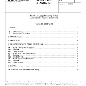 These SAE HUMS Interface Specifications include the minimal interface and performance requirements for interoperability with the Rotorcraft Industry Technology Association (RITA) compliant HUMS. Compliance with these Interface Specifications can be referenced in more comprehensive procurement and device specifications.