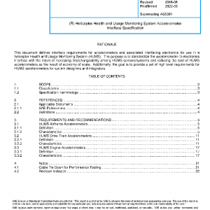 This SAE HUMS Accelerometer Interface Specification includes the minimal interface and performance requirements for commonality. Compliance with this Interface Specifications can be referenced in more comprehensive procurement and device specifications.