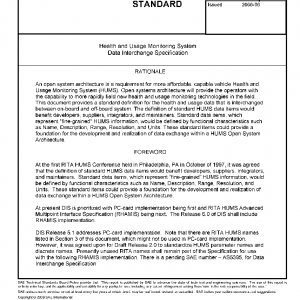 This document establishes the Rotorcraft Industry Technology Association (RITA) Health and Usage Monitoring System Data Interchange Specification. The RITA HUMS Data Interchange Specification will provide information exchange within a rotorcraft HUMS and between a rotorcraft HUMS and external entities.