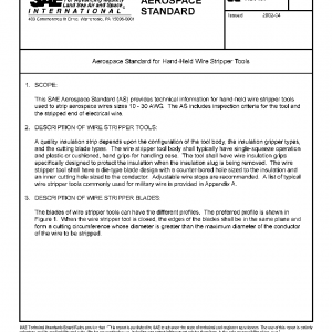 This SAE Aerospace Standard (AS) provides technical information for hand-held wire stripper tools used to strip aerospace wires sizes 10 – 30 AWG. The AS includes inspection criteria for the tool and the stripped end of electrical wire.
