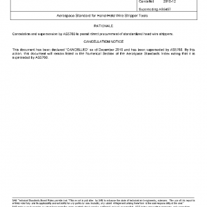 This SAE Aerospace Standard (AS) provides technical information for hand-held wire stripper tools used to strip aerospace wire sizes 10 – 30 AWG. The AS includes inspection criteria for the tool and the stripped end of electrical wire.