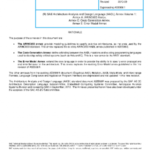 SAE Architecture Analysis and Design Language (AADL) Annex Volume 1: Annex A: ARINC653 Annex, Annex C: Code Generation Annex, Annex E: Error Model Annex