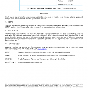 This SAE Aerospace Standard (AS) establishes the surface pretreatment, temperature and baking time required to cure AS5272 lubricant when it is applied over the surfaces of manufactured parts of various metals.