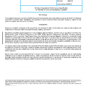This SAE Aerospace Standard (AS)/Minimum Operational Performance Specification (MOPS) specifies the minimum performance requirements of remote on-ground ice detection systems (ROGIDS). These systems are ground based. They provide information that indicates whether frozen contamination is present on aircraft surfaces.