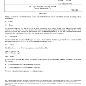 The primary function of this specification is to cover the general requirements of one-, two-, and three-phase (often referred to as poles) trip-free circuit breakers for use in aircraft electric systems conforming to MIL-STD-704. As a secondary function, this specification may possibly cover the general requirements of one-, two- and three-phase circuit breakers for use in primary vehicles, other than aircraft, when mounted directly to the structure.