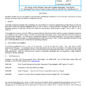 This SAE Aerospace Standard (AS) establishes the requirements for externally swaged titanium tube fittings on titanium and CRES tubing with flareless separable fitting for use in hydraulic supply and return aerospace fluid systems up to operating pressure of 5080 psig (35 000 kPa) maximum and an operating temperature range of −65 to +275 °F (−54 to +135 °C).