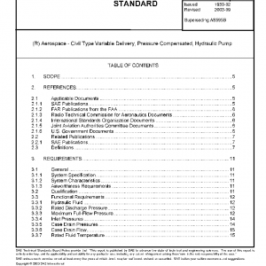 This SAE Aerospace Standard (AS) establishes the general requirements for the design, construction, acceptance and qualification test of pressure compensated, variable delivery hydraulic pumps, used in civil aircraft hydraulic systems. It provides additional parameters for a Procurement Specification to be used in conjunction with this AS for each pump.