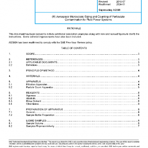 This SAE Aerospace Standard (AS) defines the materials, apparatus and procedure for microscopic sizing and counting of particulate contamination of fluid power systems by membrane filtration using microscopic counting.