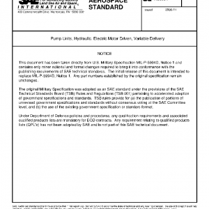 This specification establishes the common requirements for variable delivery electric motor driven, hydraulic pump units, suitable for use in aircraft hydraulic systems.