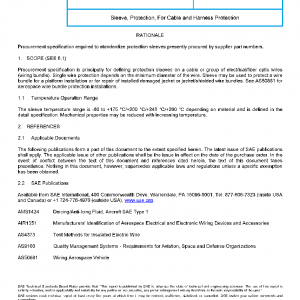 Procurement specification is principally for defining protection sleeves on a cable or group of electrical/fiber optic wires (wiring bundle). Single wire protection depends on the minimum diameter of the wire. Sleeve may be used to protect a wire bundle for a platform installation or for repair of installed damaged jacket or jacket/shielded wire bundles. See AS50881 for aerospace wire bundle protection installations.
