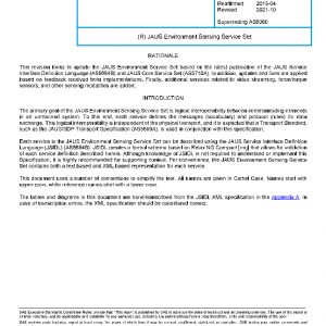 This document defines a set of standard application layer interfaces called JAUS Environment Sensing Services. JAUS Services provide the means for software entities in an unmanned system or system of unmanned systems to communicate and coordinate their activities. The Environment Sensing Services represent typical environment sensing capabilities commonly found across all domains and types of unmanned systems in a platform-independent manner. At present, twelve services are defined in this document: