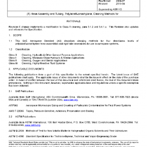 This SAE Aerospace Standard (AS) describes cleaning methods for four cleanliness levels of polytetrafluoroethylene hose assemblies and rigid tube assemblies for use in aerospace systems.