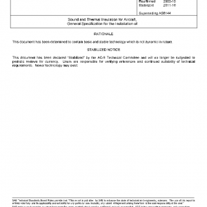 Sound and Thermal Insulation for Aircraft, General Specification for the Installation of(STABILIZED Oct 2011)