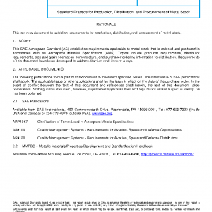 This SAE Aerospace Standard (AS) establishes requirements applicable to metal stock that is ordered and produced in accordance with an Aerospace Material Specification (AMS). Topics include producer requirements, distributor requirements, size and grain orientation nomenclature, and purchaser ordering information to distributors. Requirements of this document have been developed to address titanium and titanium alloys.