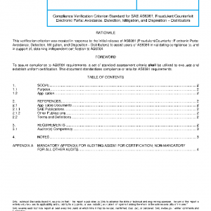 Compliance Verification Criterion Standard for SAE AS6081, Fraudulent/Counterfeit Electronic Parts: Avoidance, Detection, Mitigation, and Disposition – Distributors