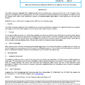 This SAE Aerospace Standard (AS) establishes the minimum performance standards for equipment used as secondary alternating current (AC) electrical power sources in aerospace electric power systems.