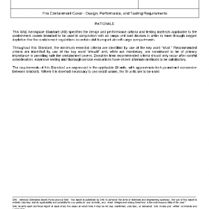This SAE Aerospace Standard (AS), identical to ISO 14186, specifies the minimum design and performance criteria and testing methods of fire containment covers (FCCs) used either:
