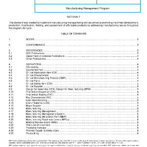 This standard is applicable to all phases of the system acquisition life cycle. It is intended for use on all programs with manufacturing content. It requires proven manufacturing management practices with the goal of delivering affordable and capable systems to the extent that it is invoked contractually. The term “organization” as used in this document refers to the company or facility that is implementing this standard, such as when imposed contractually by the customer.