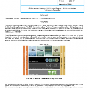 This document is the Architecture Description (AD) for the SAE Unmanned Systems (UxS) Control Segment (UCS) Architecture Library Revision A or, simply, the UCS Architecture. The architecture is expressed by a library of SAE publications as referenced herein. The other publications in the UCS Architecture Library Revision A are: AS6513A, AS6518A, AS6522A, and AS6969A.
