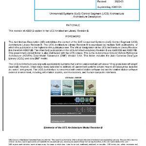 This document is the Architecture Description (AD) for the SAE Unmanned Systems (UxS) Control Segment (UCS) Architecture Library Revision B or, simply, the UCS Architecture. The architecture is expressed by a library of publications as referenced herein. The other SAE publications in the UCS Architecture Library Revision B are AS6513B and AS6518B. The library also includes the government-owned Autonomous Ground Vehicle Reference Architecture (AGVRA) Data Model Framework Version 3.1A.