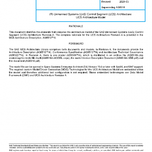 | PAGE | This document identifies the elements that comprise the architecture model of the SAE Unmanned Systems (UxS) Control Segment (UCS) Architecture Revision A. The complete rationale for the UCS Architecture Revision A is provided in the UCS Architecture Description, AS6512™A. |