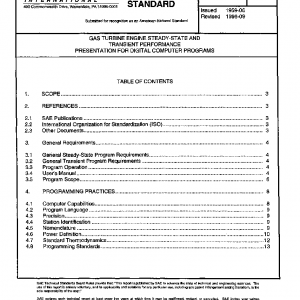 This Aerospace Standard (AS) provides a method for the presentation of gas turbine engine steady-state and/or transient performance as calculated by means of digital computer programs. It also provides a method for the presentation of gas turbine parametric performance, weight and dimensions by means of digital computer programs.