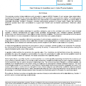 This data dictionary provides definitions for quantities, measurement units, reference systems, measurands, measurements, and quantity modalities commonly used in the command and control of cyber-physical systems. A cyber-physical system is an engineered system that is built from, and depends upon, the seamless integration of computational algorithms and physical components. Cyber-physical systems are often interconnected via data links and networks. The term encompasses intelligent vehicles and devices that operate in any environment, including robotic and autonomous systems.