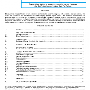 This document describes methods for measuring dynamic forces, pressures, and projectile fragment distribution patterns during an impact between a soft or frangible projectile and a rigid flat inclined surface. It also describes the hardware, setup, and instrumentation required.