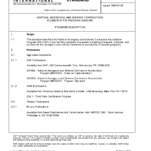 This standard describes the National Aerospace and Defense Contractors Accreditation Program (NADCAP) to accredit the capability of suppliers furnishing processes, products, and services for the aerospace and defense industries as provided for in specific programs.