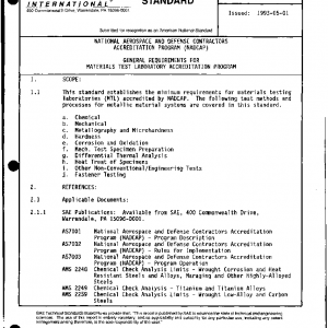 This standard establishes the minimum requirements for materials testing laboratories (MTL) accredited by NADCAP. The following test methods and processes for metallic material systems are covered in this standard.