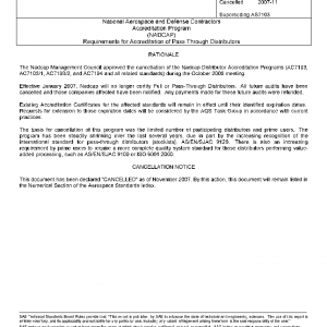 National Aerospace and Defense Contractors Accreditation Program (NADCAP) Requirements for Accreditation of Pass Through Distributors(Cancelled Nov 2007)