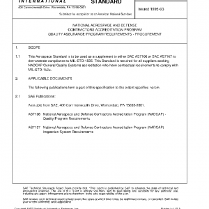 This Aerospace Standard is to be used as a supplement to either SAE AS7106 or SAE AS7107 to demonstrate compliance to MIL-STD-1535. This Standard is required for all suppliers seeking NADCAP General Quality Systems accreditation who have contractual requirements to comply with MIL-STD-1535.