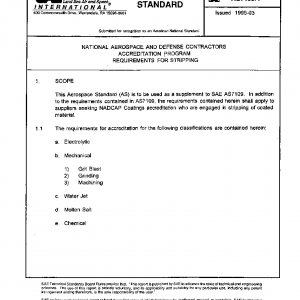 This Aerospace Standard (AS) is to be used as a supplement to SAE AS7109. In addition to the requirements contained in AS7109, the requirements contained herein shall apply to suppliers seeking NADCAP Coatings accreditation who are engaged in stripping of coated material.