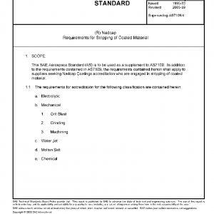 This SAE Aerospace Standard (AS) is to be used as a supplement to AS7109. In addition to the requirements contained in AS7109, the requirements contained herein shall apply to suppliers seeking Nadcap Coatings accreditation who are engaged in stripping of coated material.