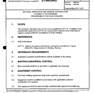 This Aerospace Standard (AS) is to be used to supplement AS7110. In addition to the requirements contained in AS7110, the requirements contained herein shall apply to suppliers seeking NADCAP accreditation for Flash Welding.