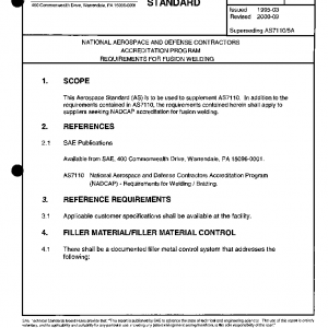 This Aerospace Standard (AS) is to be used to supplement AS7110. In addition to the requirements contained in AS7110, the requirements contained herein shall apply to suppliers seeking NADCAP accreditation for fusion welding.
