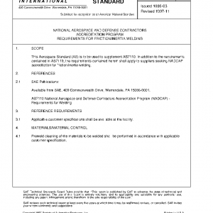 This Aerospace Standard (AS) is to be used to supplement AS7110. In addition to the requirements contained in AS7110, the requirements contained herein shall apply to suppliers seeking NADCAP accreditation for friction/inertia welding.