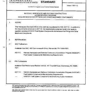 This Aerospace Standard (AS) is to be used as a supplement to SAE AS7112. In addition to the requirements contained in AS7112, the requirements contained herein shall apply to suppliers seeking NADCAP Fluid System Components Accreditation for Fittings and Other Machined Components.