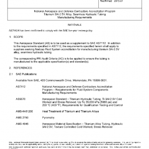 This Aerospace Standard (AS) is to be used as a supplement to SAE AS7112. In addition to the requirements specified in AS7112, the requirements specified herein shall apply to suppliers seeking Nadcap Fluid System accreditation for manufacturing titanium 3AI-2.5V alloy, seamless hydraulic tubing.