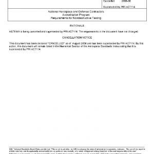 This document has been declared “CANCELLED” as of August 2008 and has been superseded by PRI AC7114. By this action, this document will remain listed in the Numerical Section of the Aerospace Standards Index noting that it is superseded by PRI AC7114. Cancelled specifications are available from SAE.
