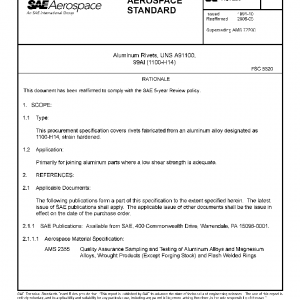 This procurement specification covers rivets fabricated from an aluminum alloy designated as 1100-H14, strain hardened.