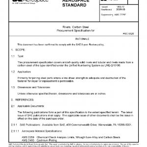 This procurement specification covers aircraft-quality solid rivets and tubular end rivets made from a carbon steel of the type identified under the Unified Numbering System as UNS G10100.