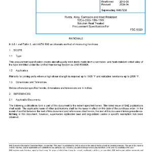 This procurement specification covers aircraft-quality solid rivets made from a corrosion- and heat-resistant cobalt alloy of the type identified under the Unified Numbering System as UNS R30605.