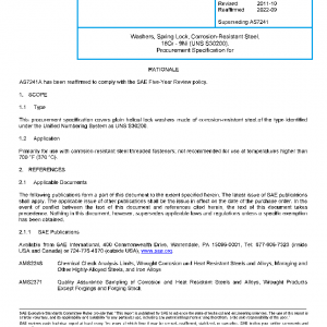 Washers, Spring Lock, Corrosion-Resistant Steel, 18Cr – 9Ni (UNS S30200), Procurement Specification for